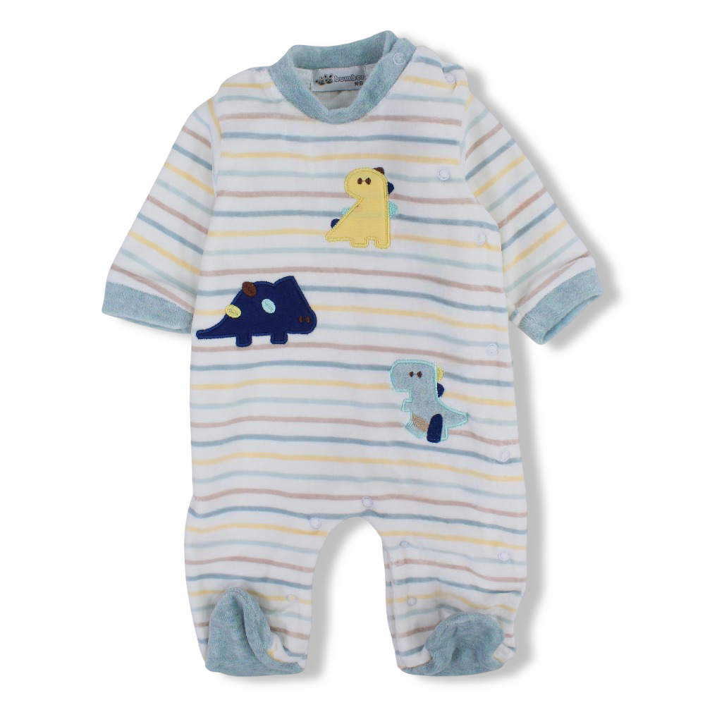 Baby Boys Velvet Baby Footie – Striped Dinosaur Print
