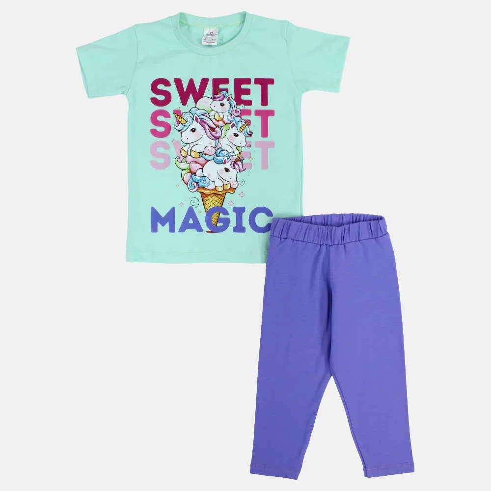 Keep bedtime light and comfy with the Sweet Magic short-sleeved pajama set. Made from breathable cotton, this adorable set is perfect for warm nights and playful dreams.
