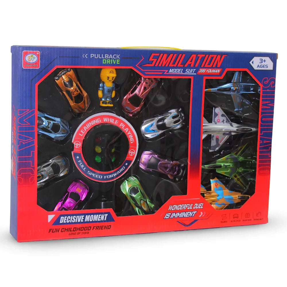 • Mixed set of cars & airplanes → gives kids more variety and endless play possibilities