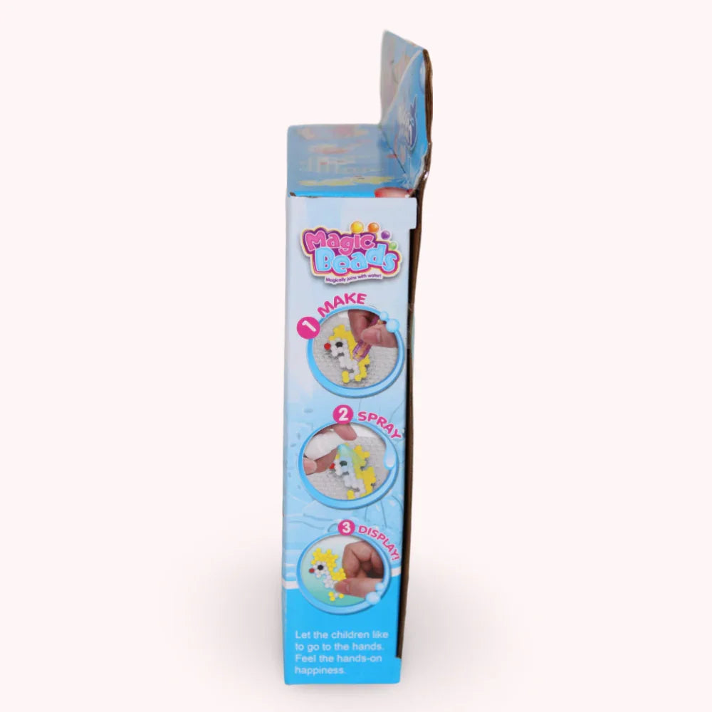 Arrange the beads on the base in the pattern of your choice, and when the arrangement is ready, spray it with water from a distance of about 10 cm. Remember - without the right amount of water - the beads will not stick together enough. You can tilt the pad and, in case of excess water, absorb it, e.g. with a paper towel. Wait until the beads come together - set them aside for at least an hour, and until the beads are completely dry - try not to touch them. Then gently remove the puzzle from the base and you're done!