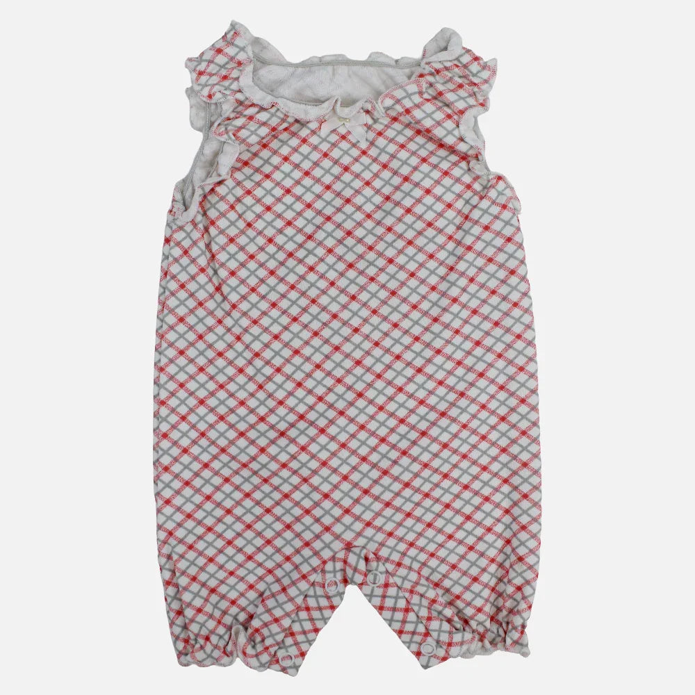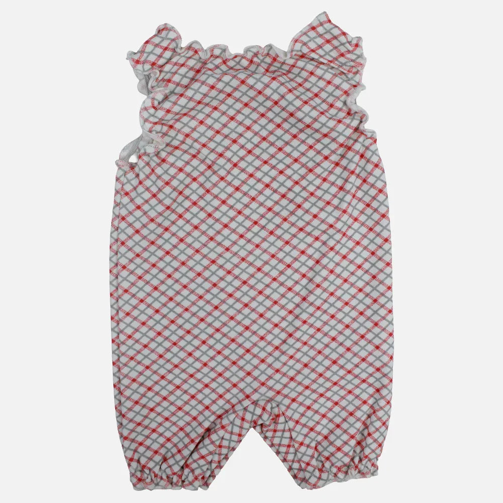Baby Girls Cotton Romper - Red Checkered