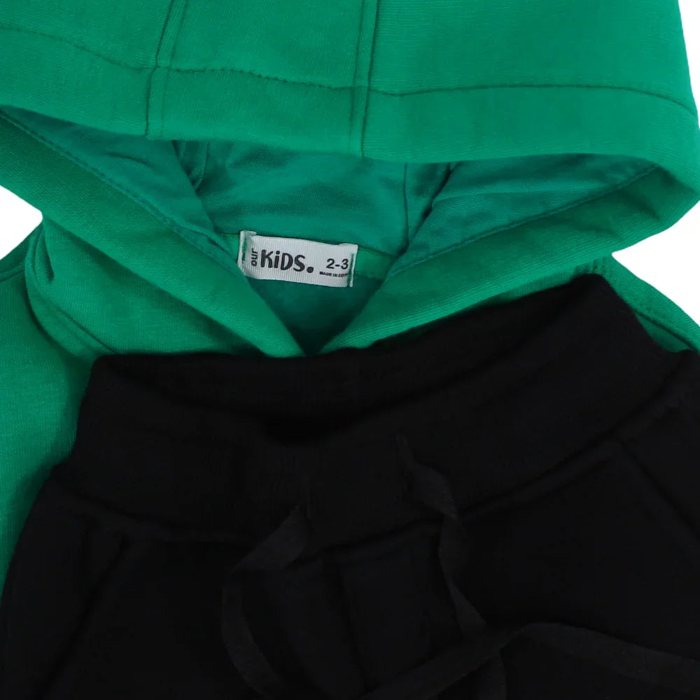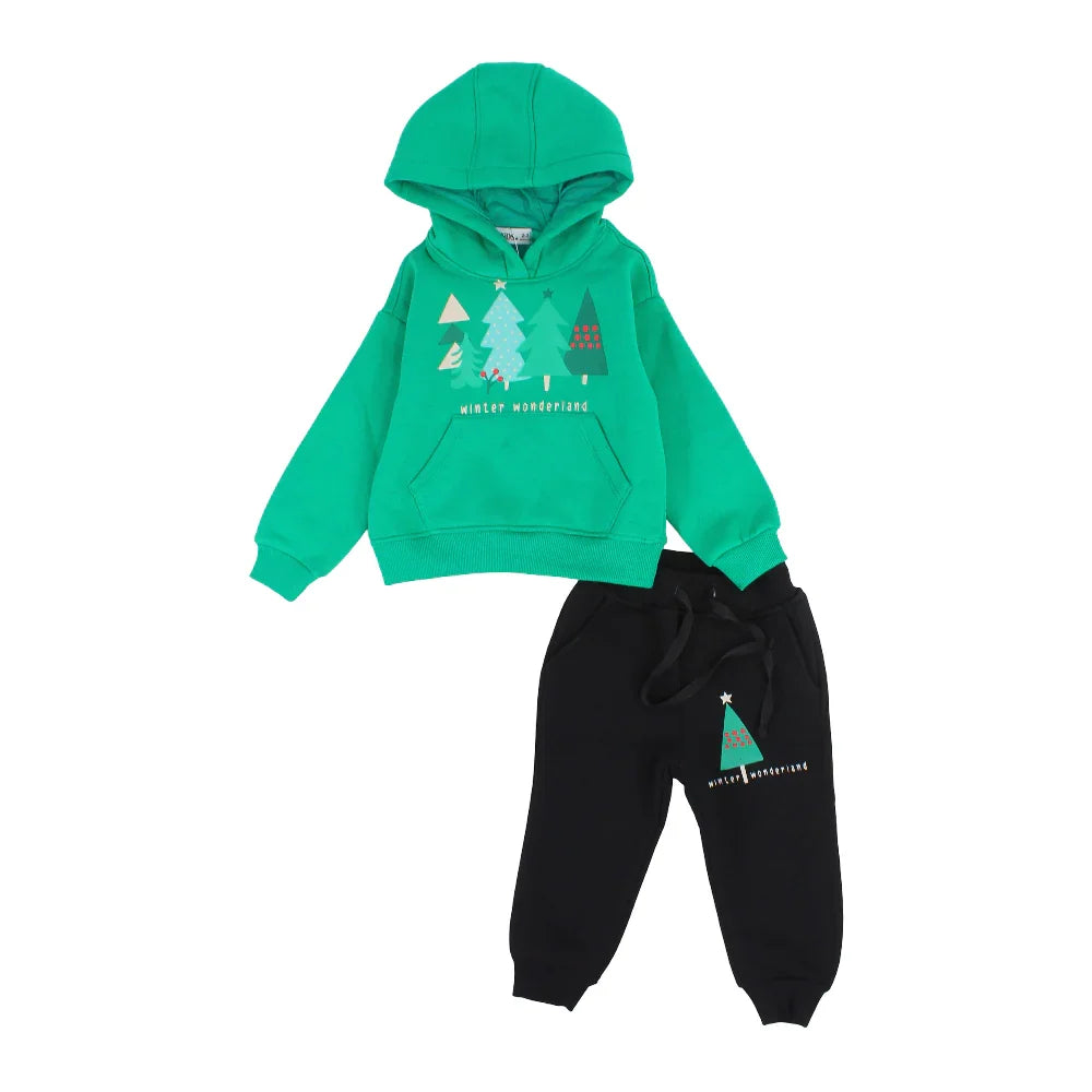Boys Cotton Hooded Pajama Set – Green with "Winter Wonderland" Design