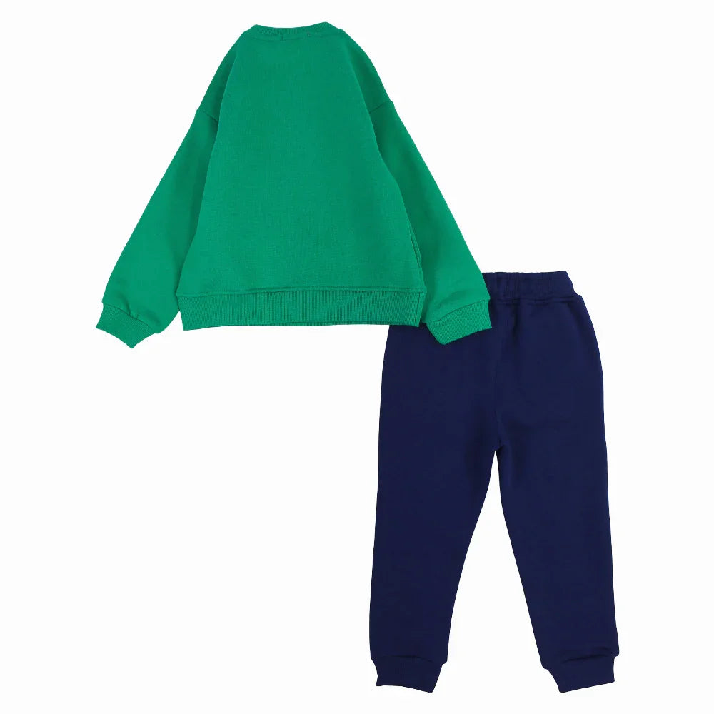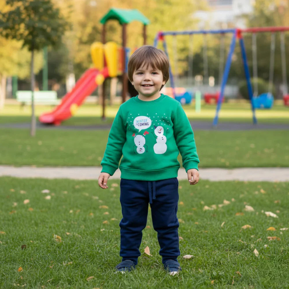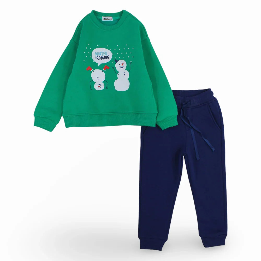 Boys Cotton Pajama Set - Green with a Snowy Winter Design