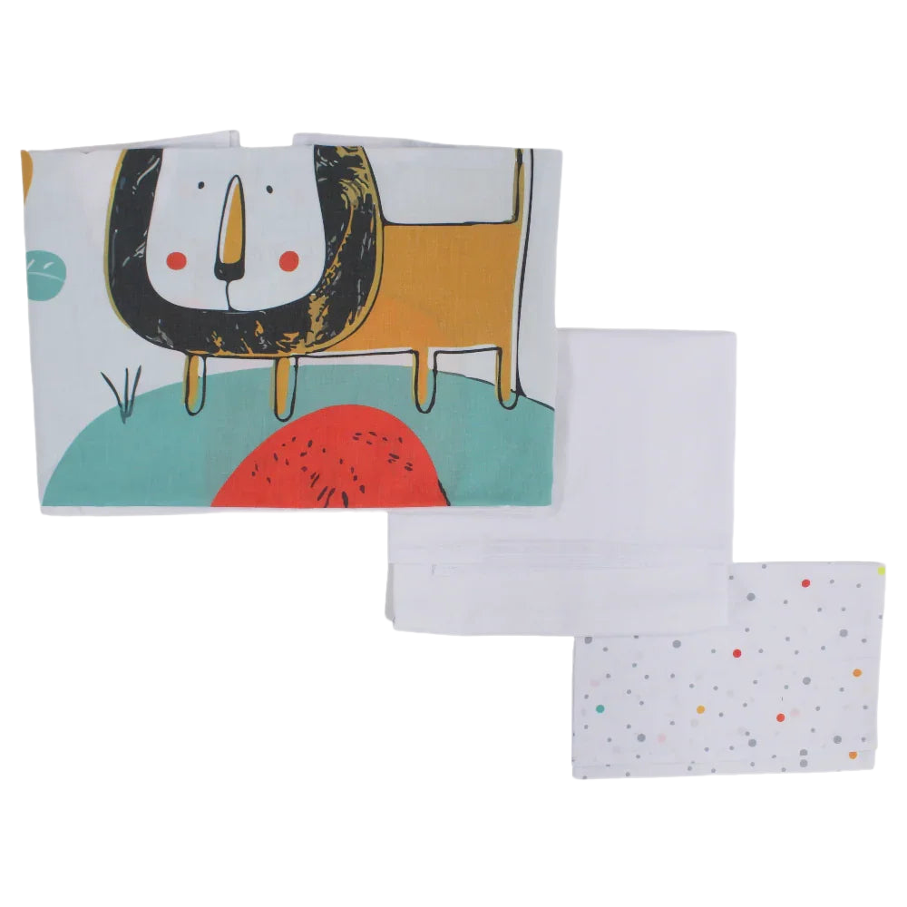 Set includes 1 fitted sheet, 1 pillowcase, and 1 flat sheet. Suitable for toddler and kid-sized beds. A great way to refresh your child’s bedding with comfort and charm.