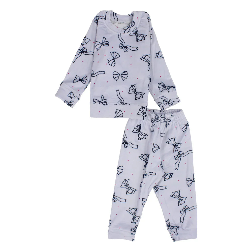 Keep her snug and stylish with the Girls Velvet Thermal Set in grey, featuring a lovely bows print. Made from ultra-soft velvet, this set offers gentle warmth and a charming touch for cooler days and nights.