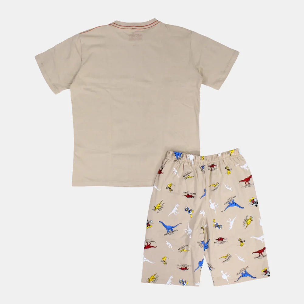 Boys Cotton Pajama Set - Mickey Mouse and Dinosaur Print