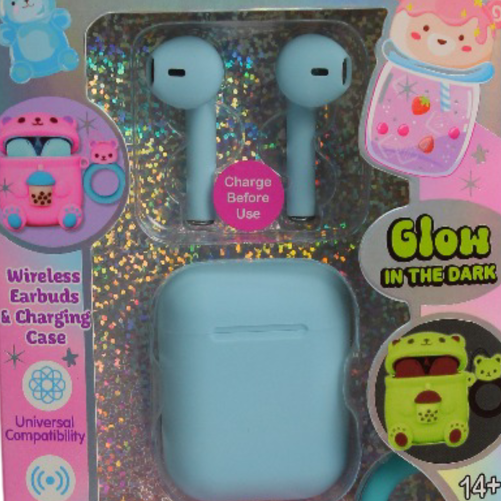 Wireless earbuds with charging case designed to provide high-quality sound and a convenient listening experience for kids and teens.