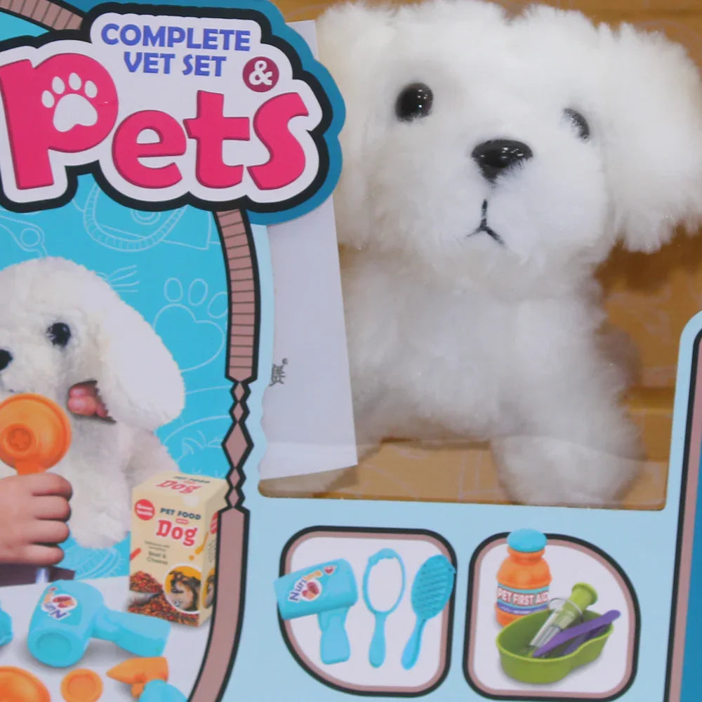 • Cute puppy figure + doctor tools → lets kids pretend to be little vets