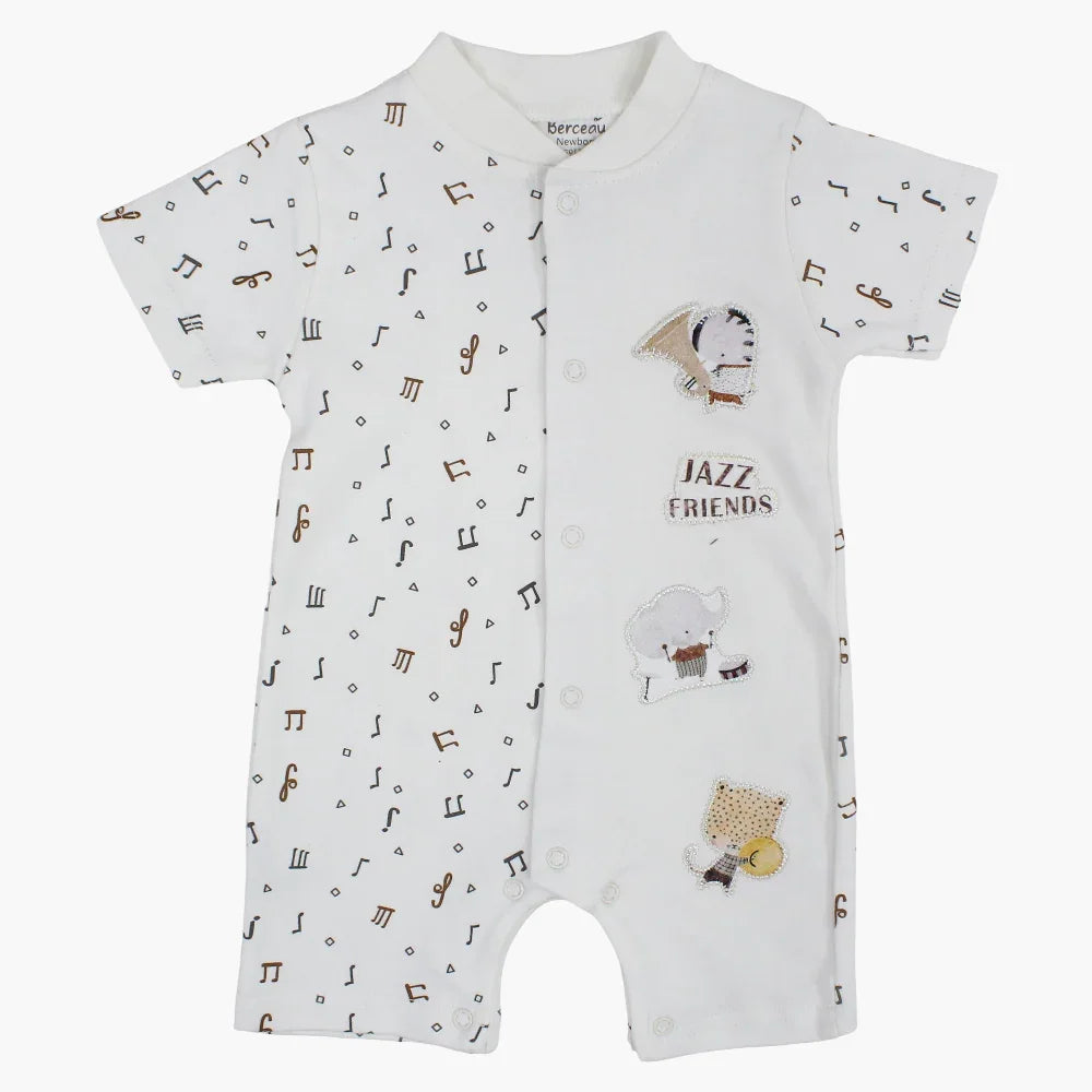 Baby Boys Cotton Romper – Off-White with Jazz Print
