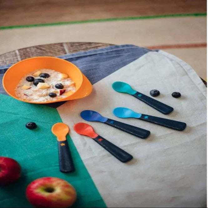 Soft, rounded spoon tips → gentle on gums and easy to scoop food