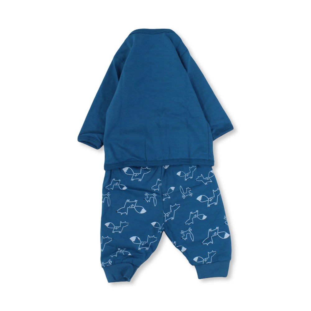Baby Boys Cotton Pajama – Blue with Fox & Hedgehog Print