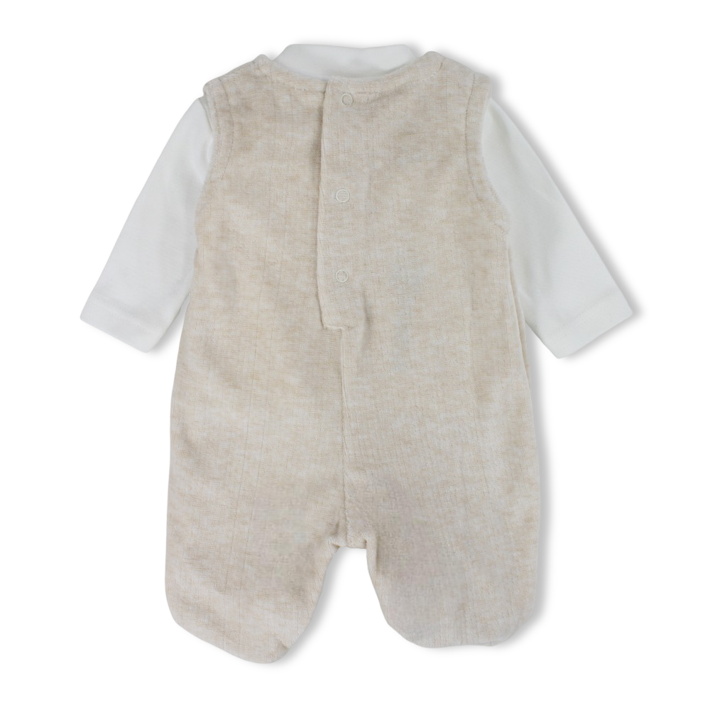 Baby Boys Velvet Baby Footie – Beige with Bear & Kite Embroidery