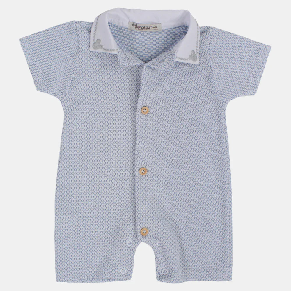 Keep your little one comfy and cool with this short-sleeved cotton romper, designed for all-day wear and easy movement. Featuring a playful , it’s a charming addition to your baby boy’s summer wardrobe.