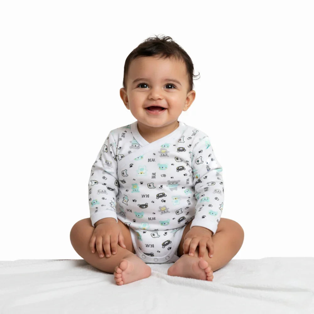 Unisex Baby Cotton Long-Sleeved Wrap-Over Printed Bodysuit - Assorted Prints