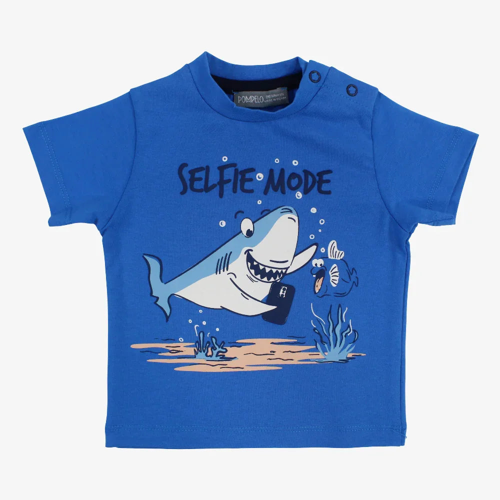 Baby Boys Cotton T-Shirt – Royal Blue with Shark Print