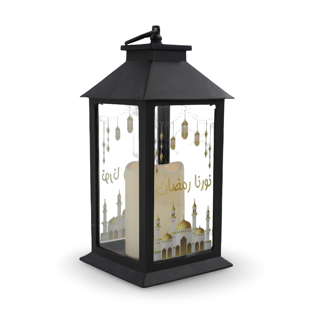 Acrylic Ramadan Lantern with Candle - Black