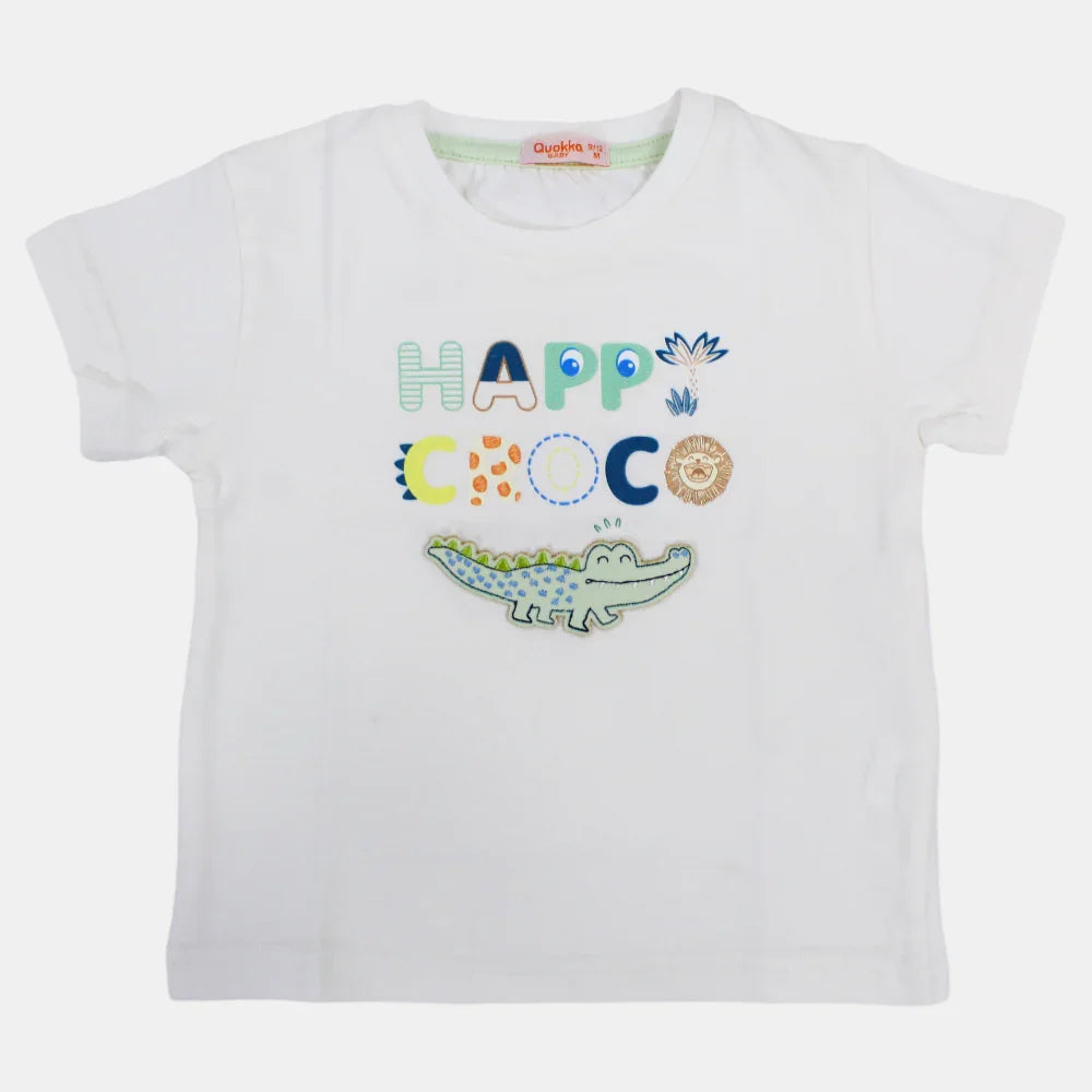 Boys Short-Sleeved Cotton T-Shirt with Happy Croco Print