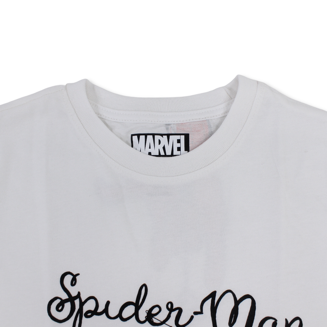 Boys Cotton Short-Sleeved T-Shirt – White with Spider-Man Script Print