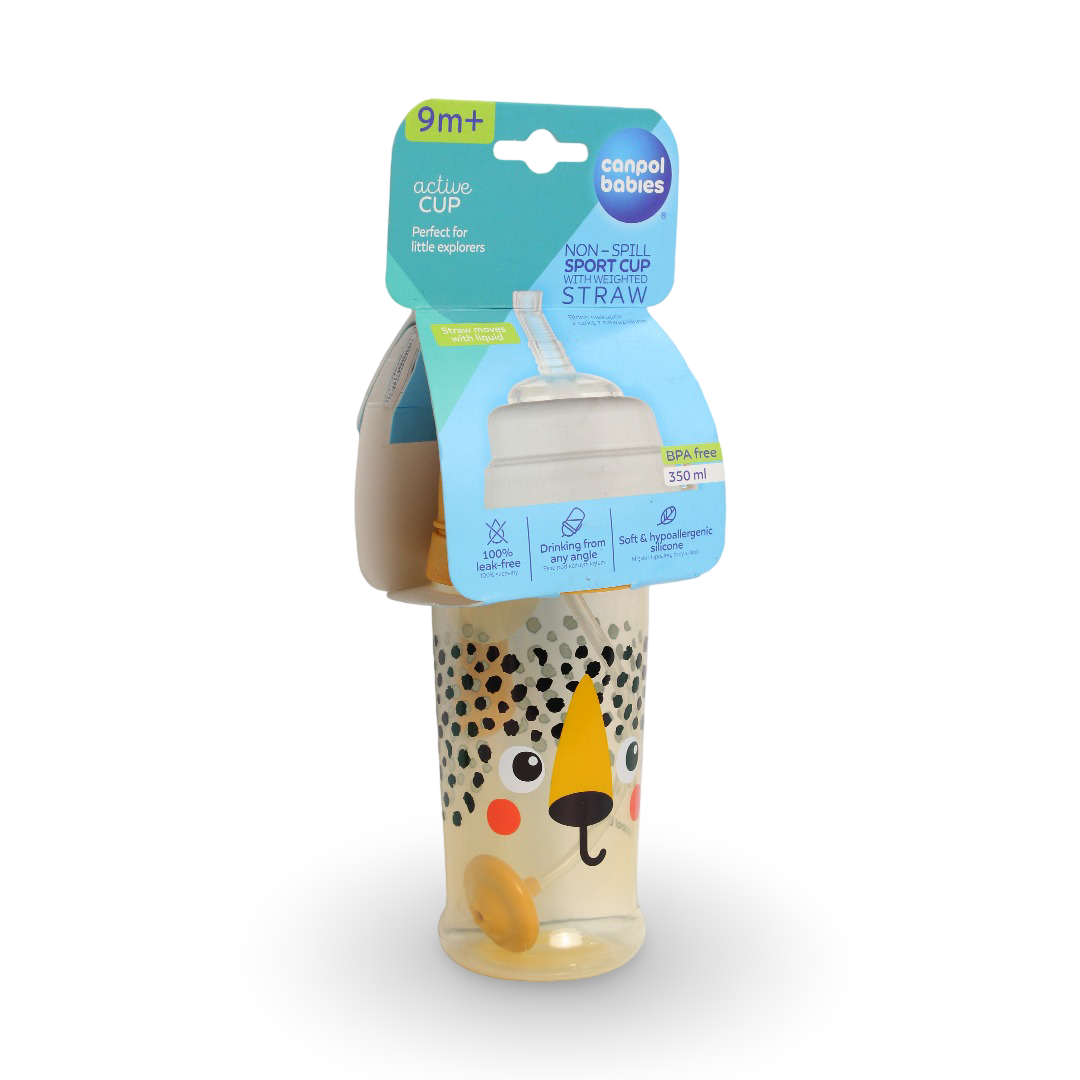 Canpol Babies Non-spill Sport Cup with a Weighted Straw +9m 350ml – Yellow