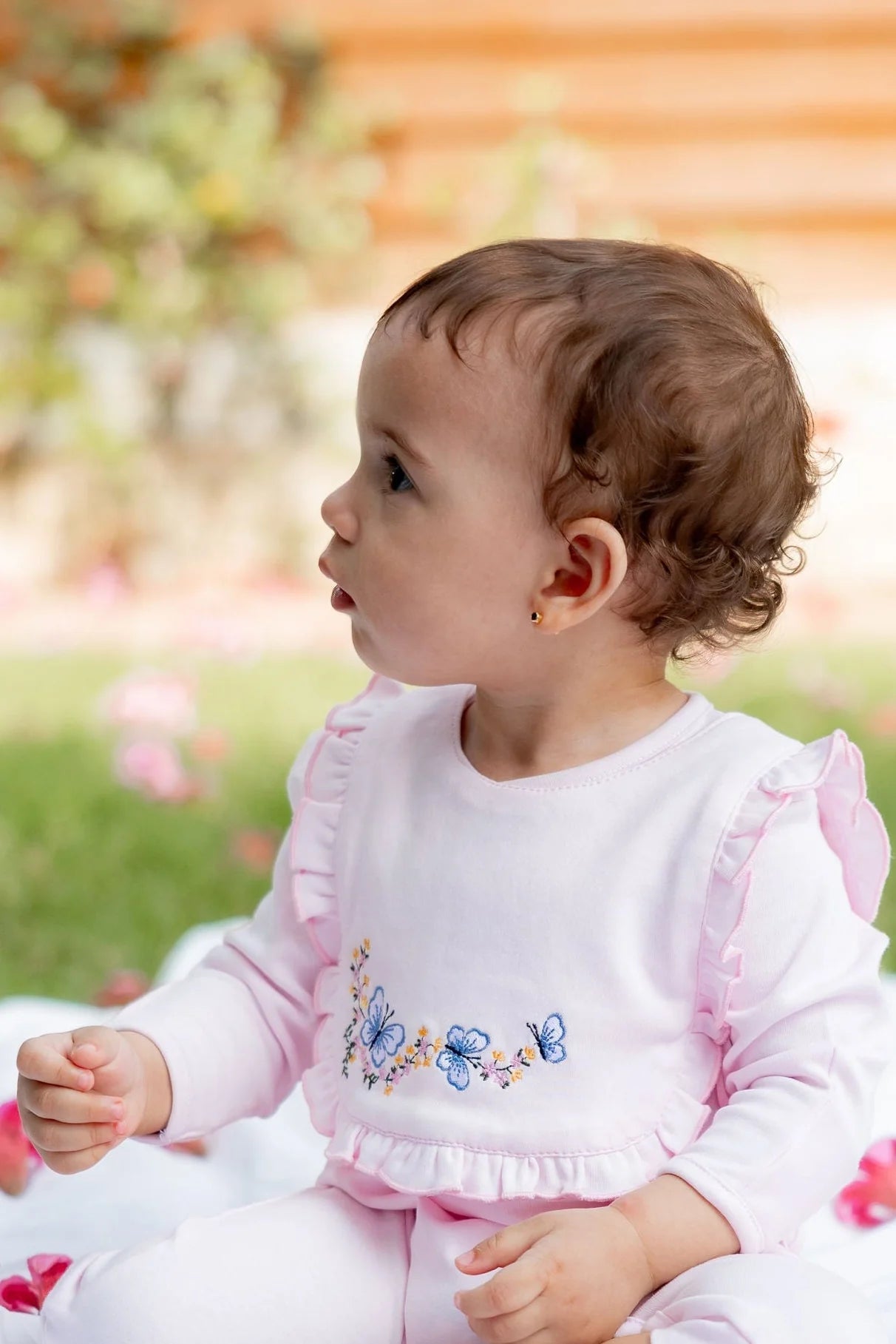 Sweet, practical, and designed with love this pink butterflies onesie is a baby wardrobe must-have!