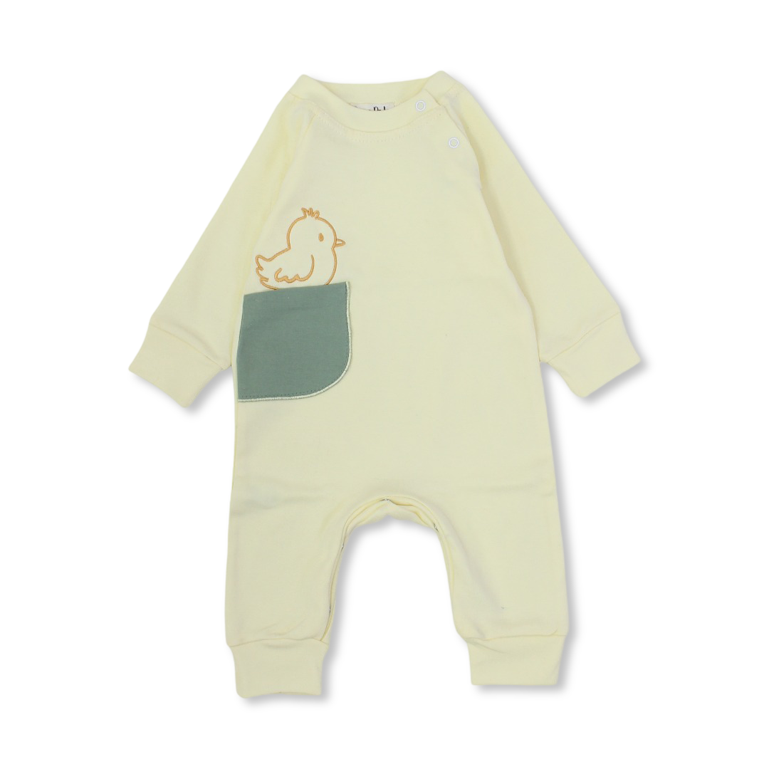 A soft and breathable cotton baby footie designed for everyday comfort and easy movement.