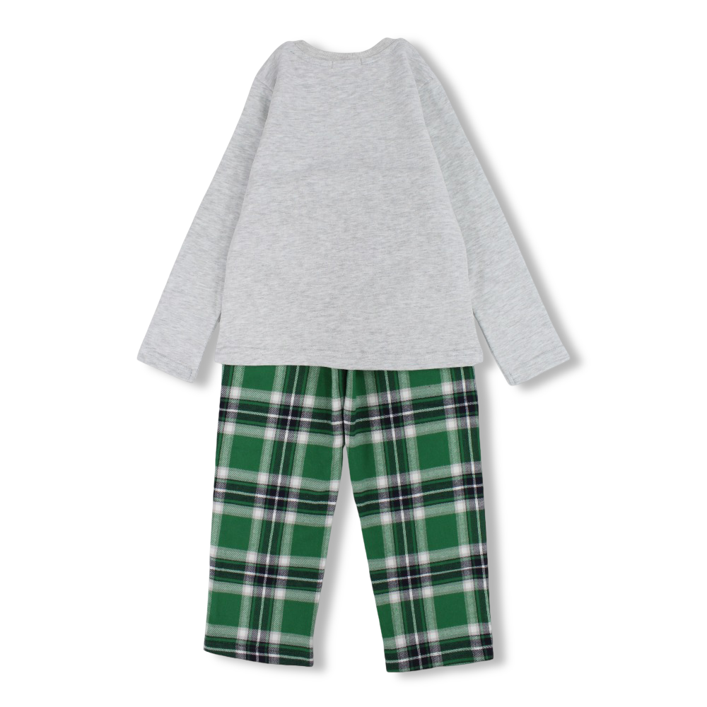 Girls Cotton 2-Piece Outfit Set – Grey with Christmas Tree Print