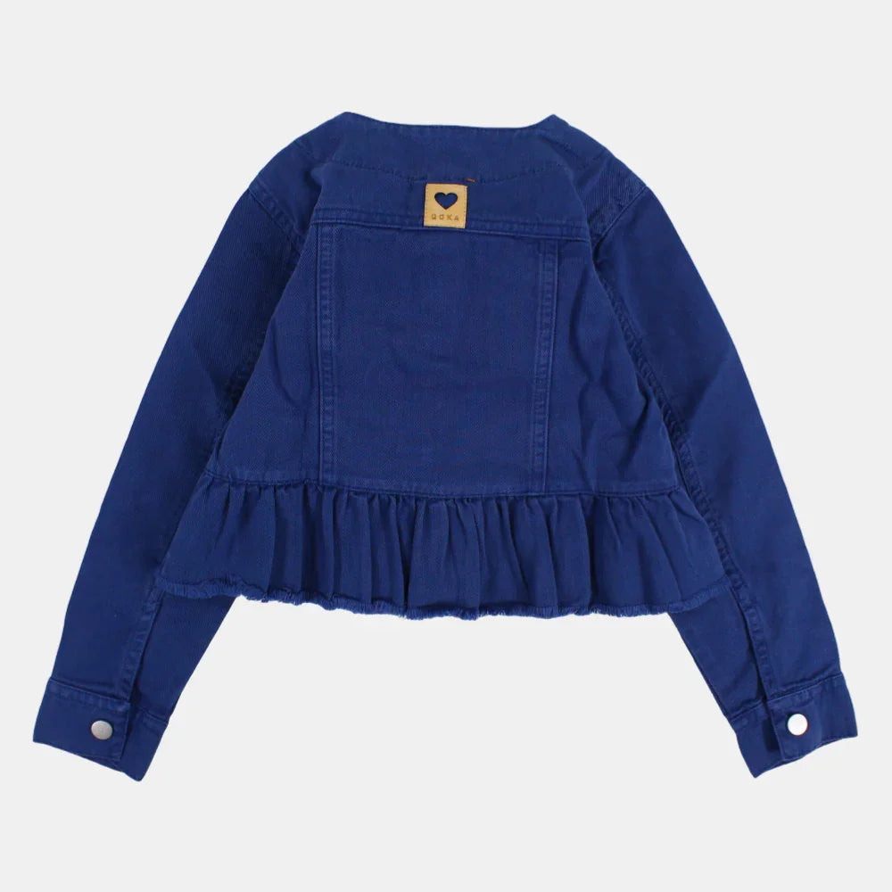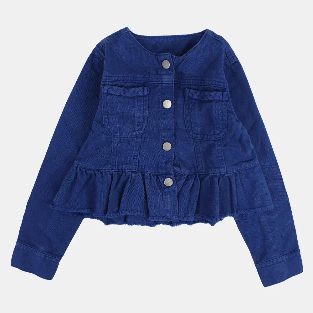 Girls Long-Sleeved Ruffled Indigo Gabardine Jacket