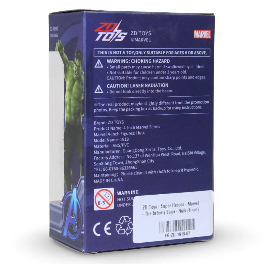 Unleash the power of the Hulk with this 4-inch action figure from ZD Toys, inspired by the Marvel Infinity Saga. Featuring the Green Goliath in his iconic form, this figure is perfect for fans who love big action in a compact size.