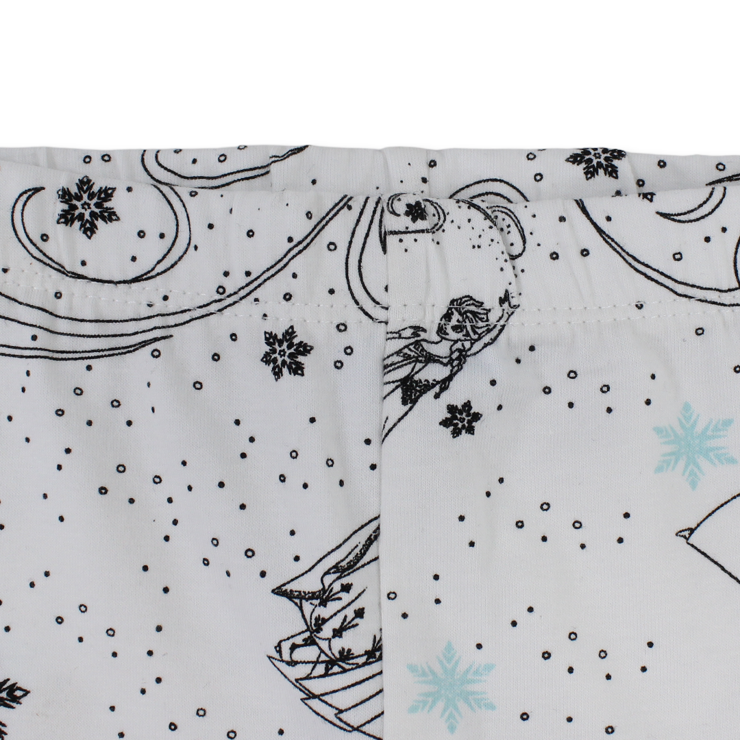 Girls Cotton Leggings – White with Frozen Print