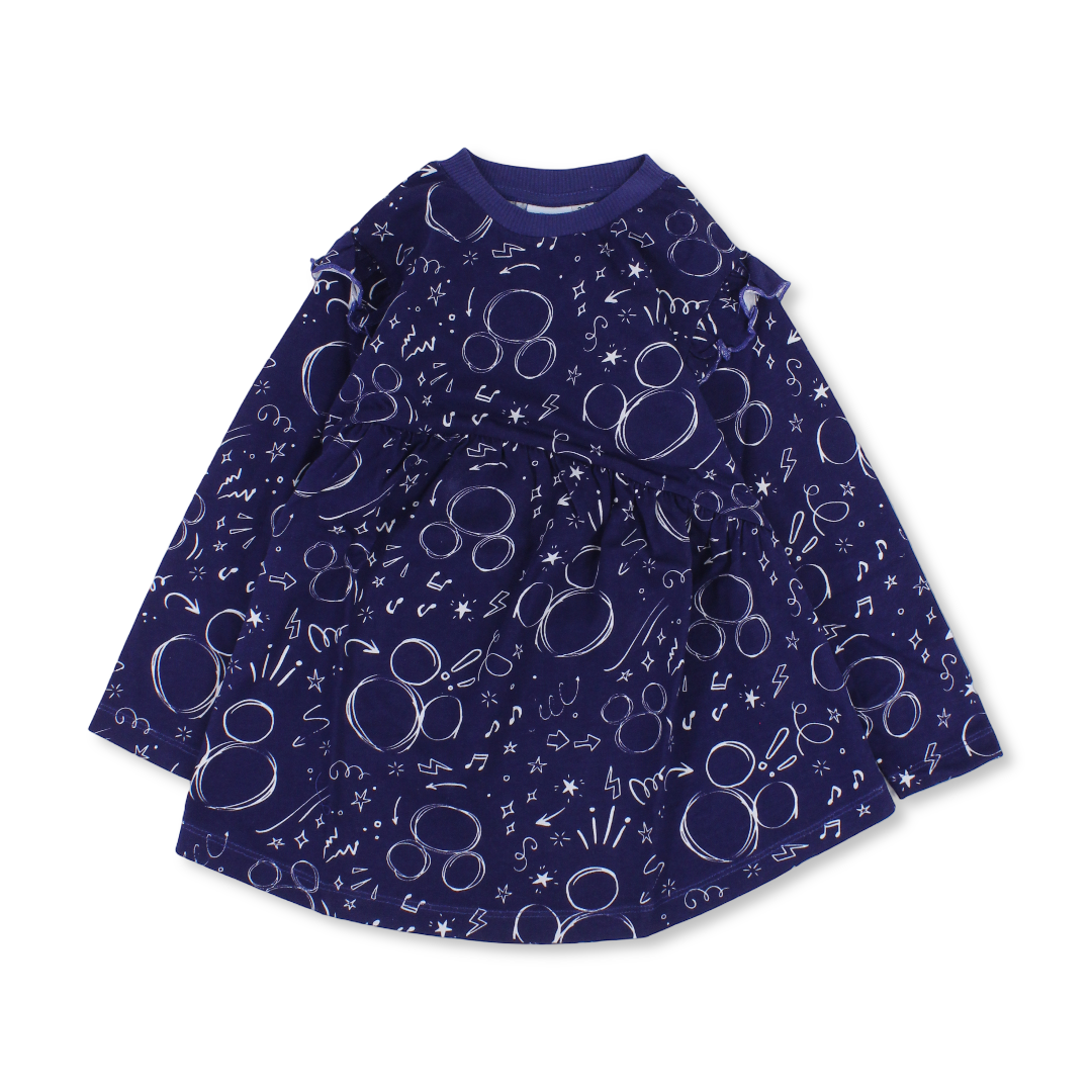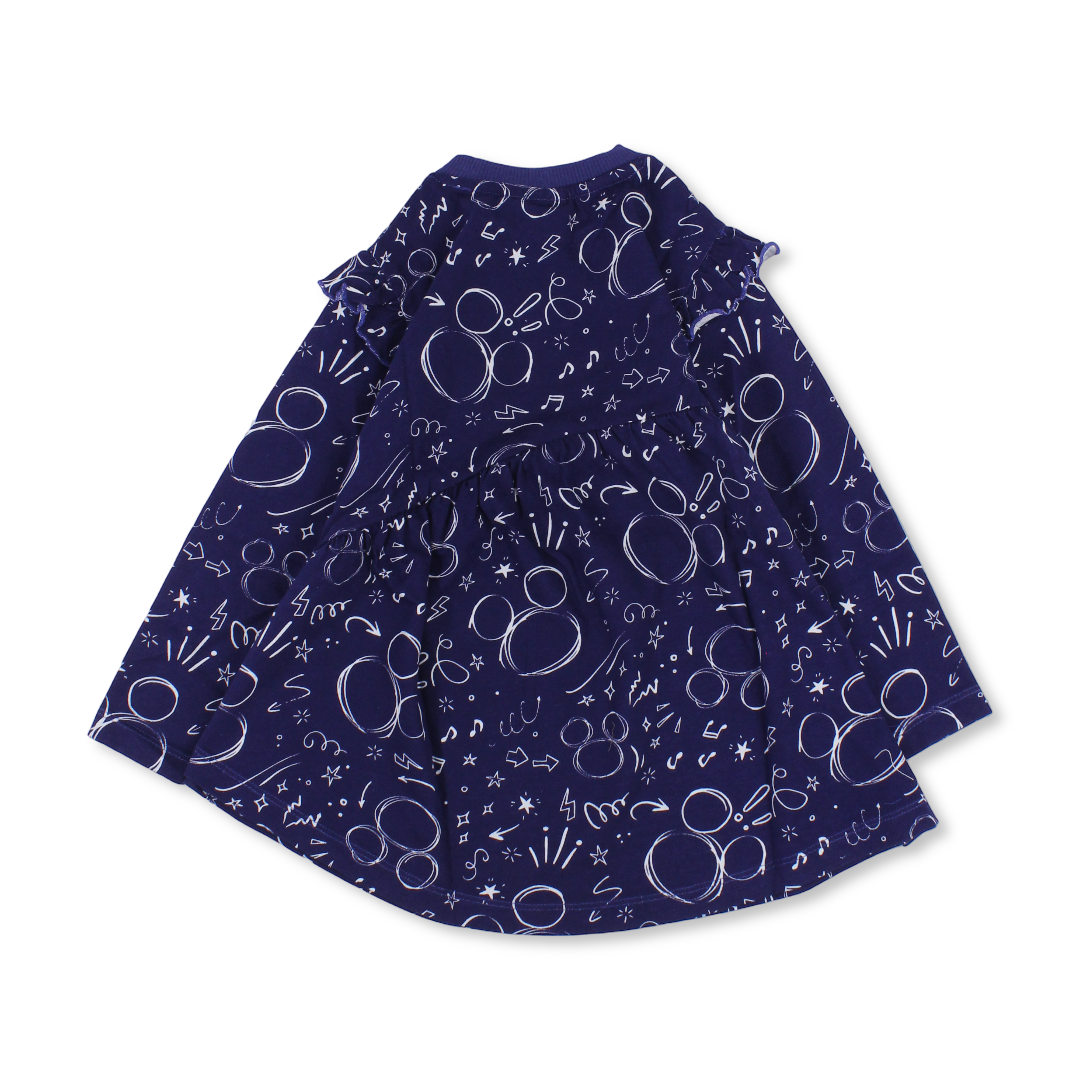 Girls Cotton Long Sleeve Dress – Blue with All-Over Mickey Print