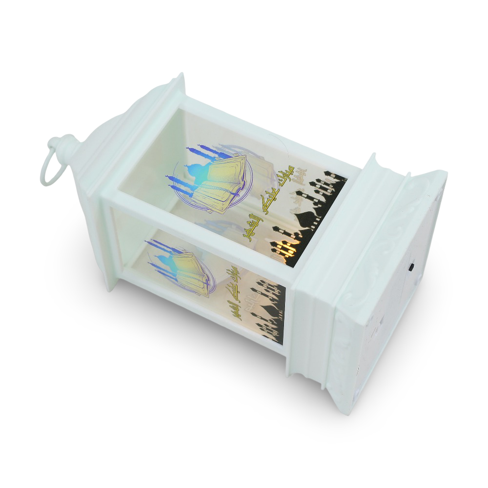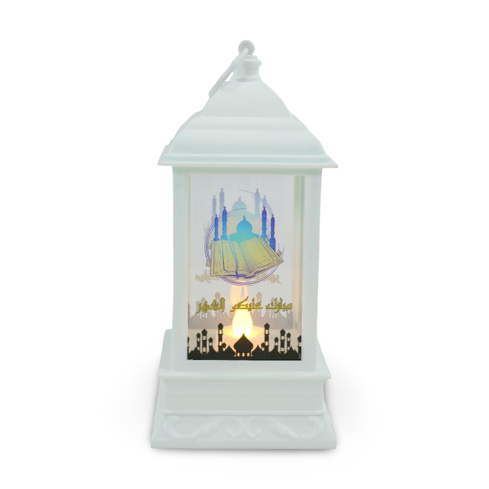 A sleek White acrylic lantern with a candle, designed to add a soft, warm glow and festive charm to your Ramadan celebrations.