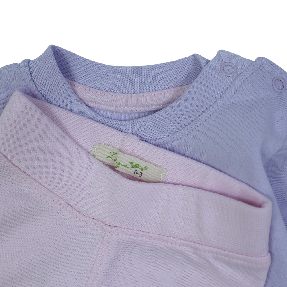 Baby Girls Cotton Pajama Set – Purple with Giraffe Embroidery