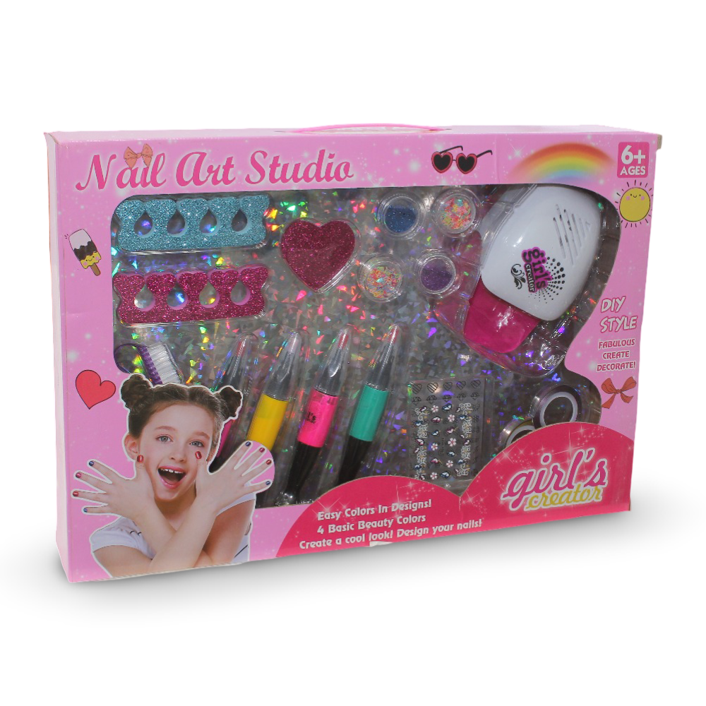 • Complete nail art studio set – supports creative DIY beauty play
