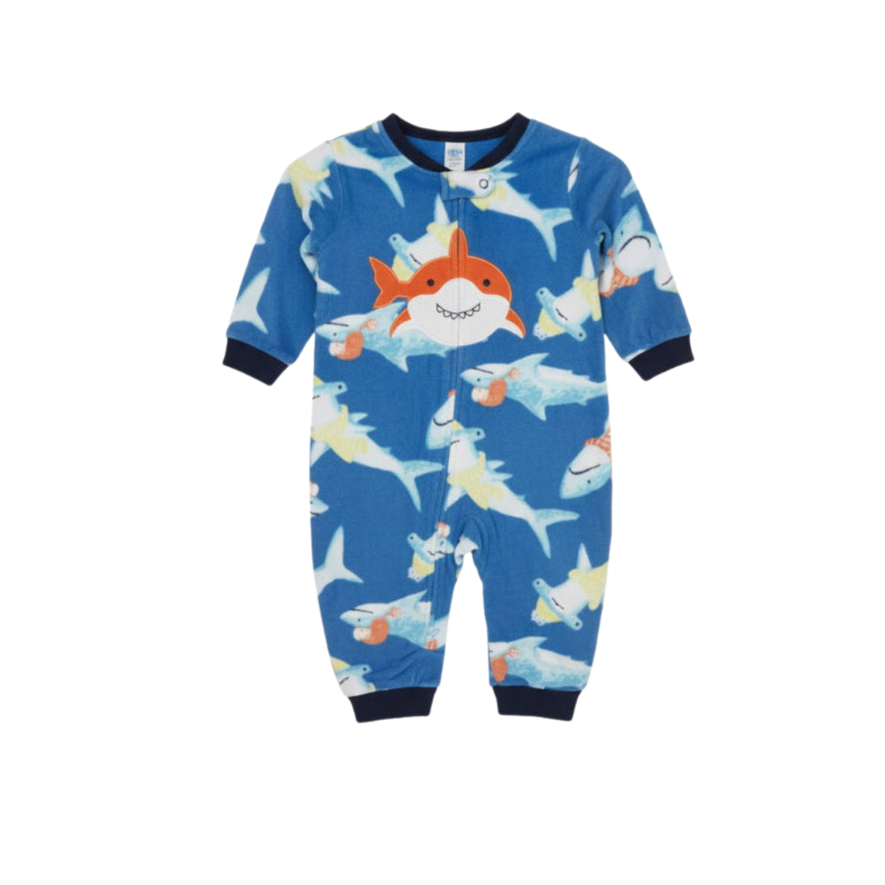 Baby Boys Fleeced Footless Onesie – Blue with Shark Design