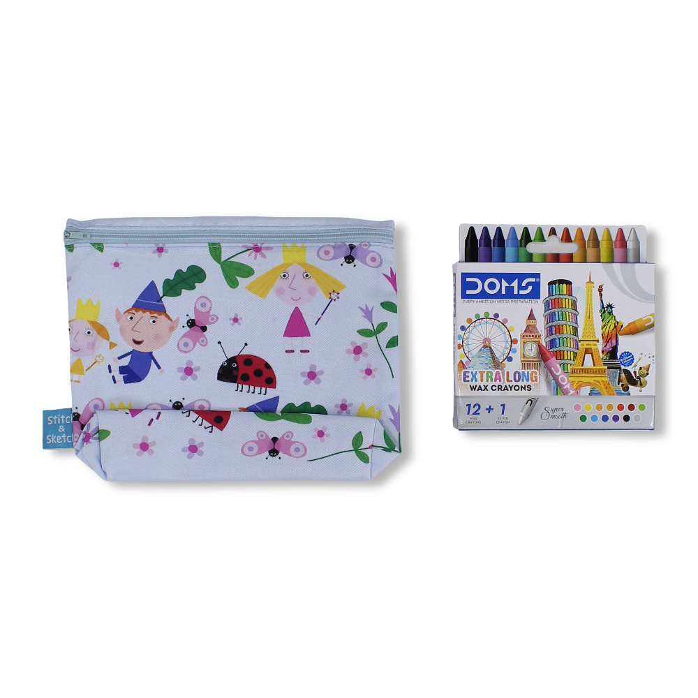 Ben & Holly Coloring Pencil Case with Extra Long Wax Crayons 12 Colours + 1 Silver