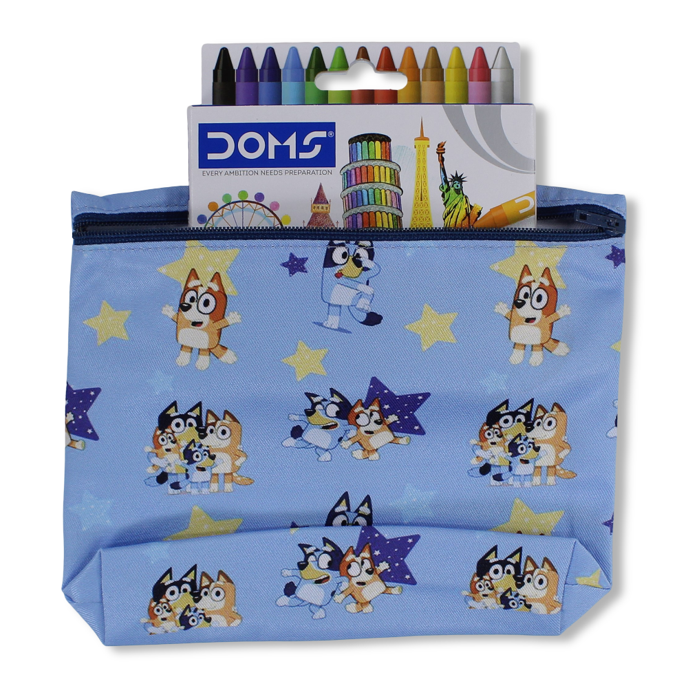 Bluey Coloring Pencil Case with Extra Long Wax Crayons 12 Colours + 1 Silver