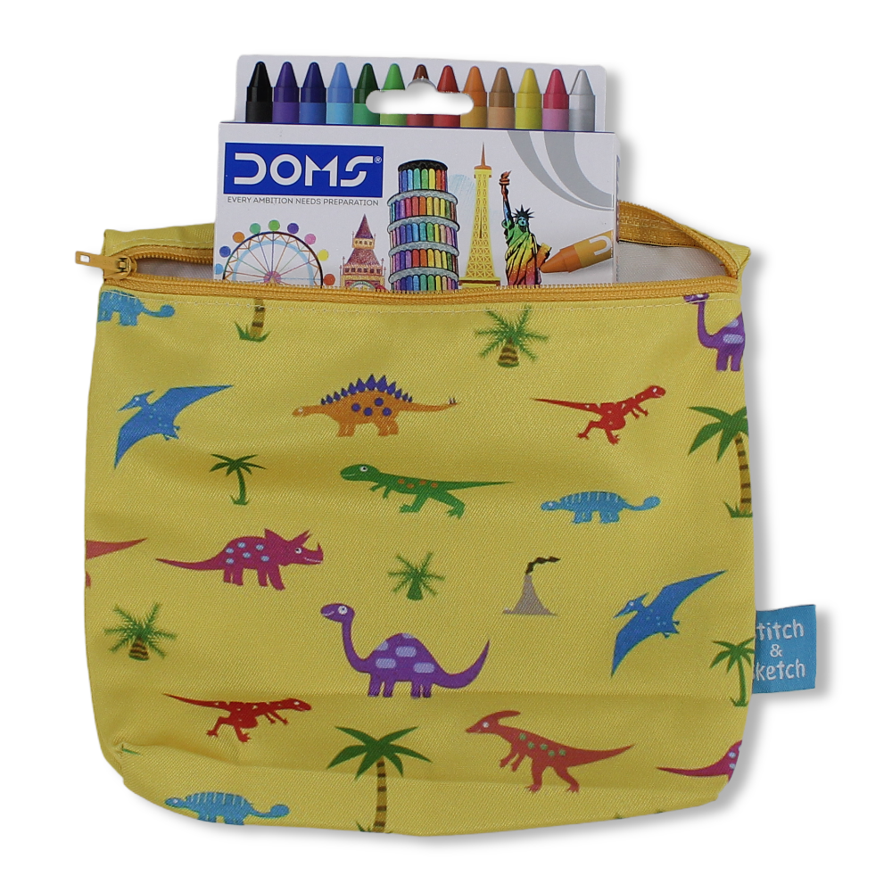 Dino Coloring Pencil Case with Extra Long Wax Crayons 12 Colours + 1 Silver
