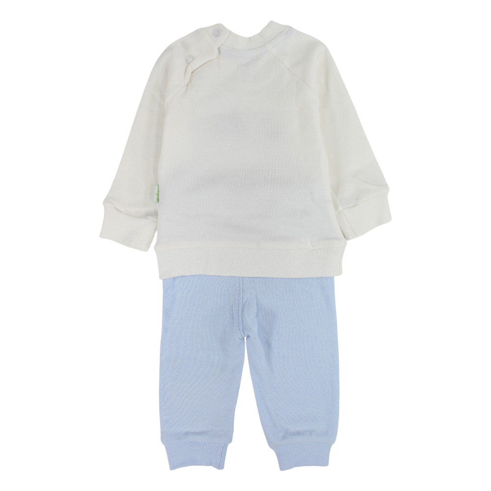 Baby Boys Cotton Pajama Set – Off-White/Babyblue with Elephant Design