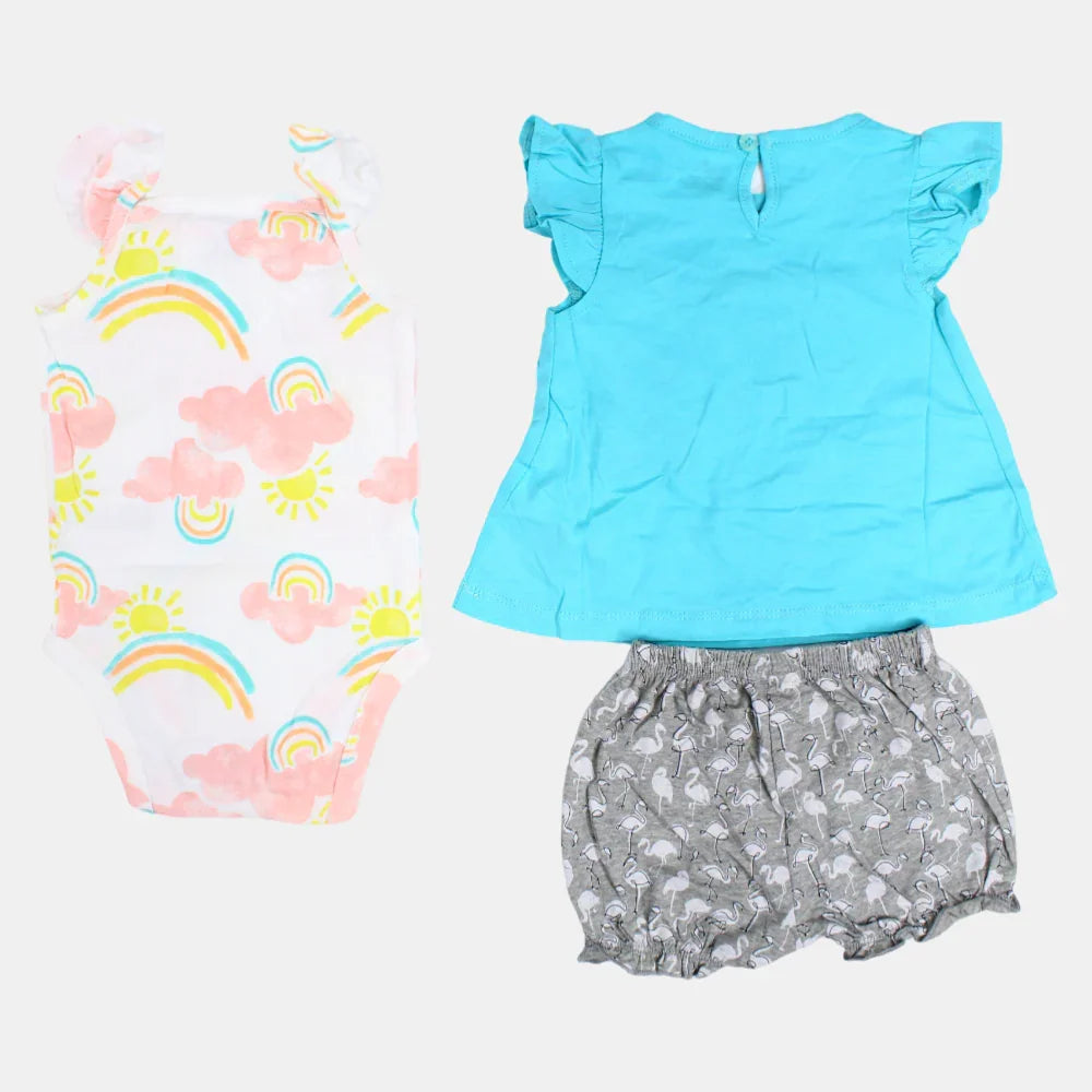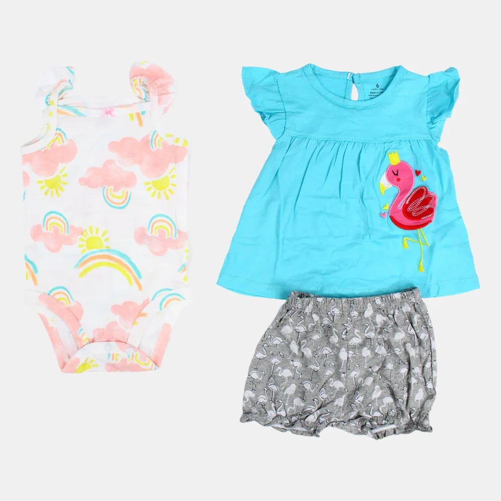 Baby Girls Aqua Flamingo-Themed 3-Piece Cotton Outfit Set