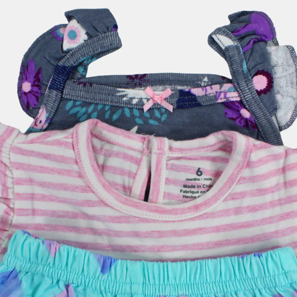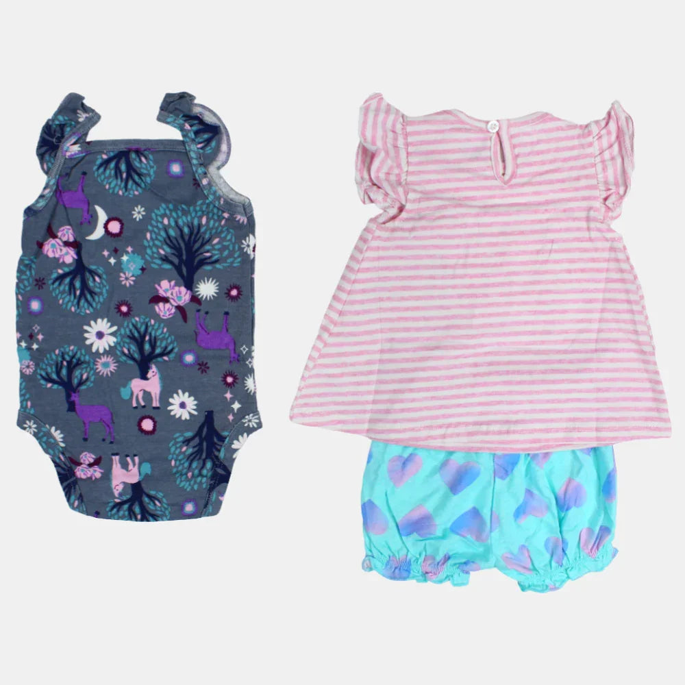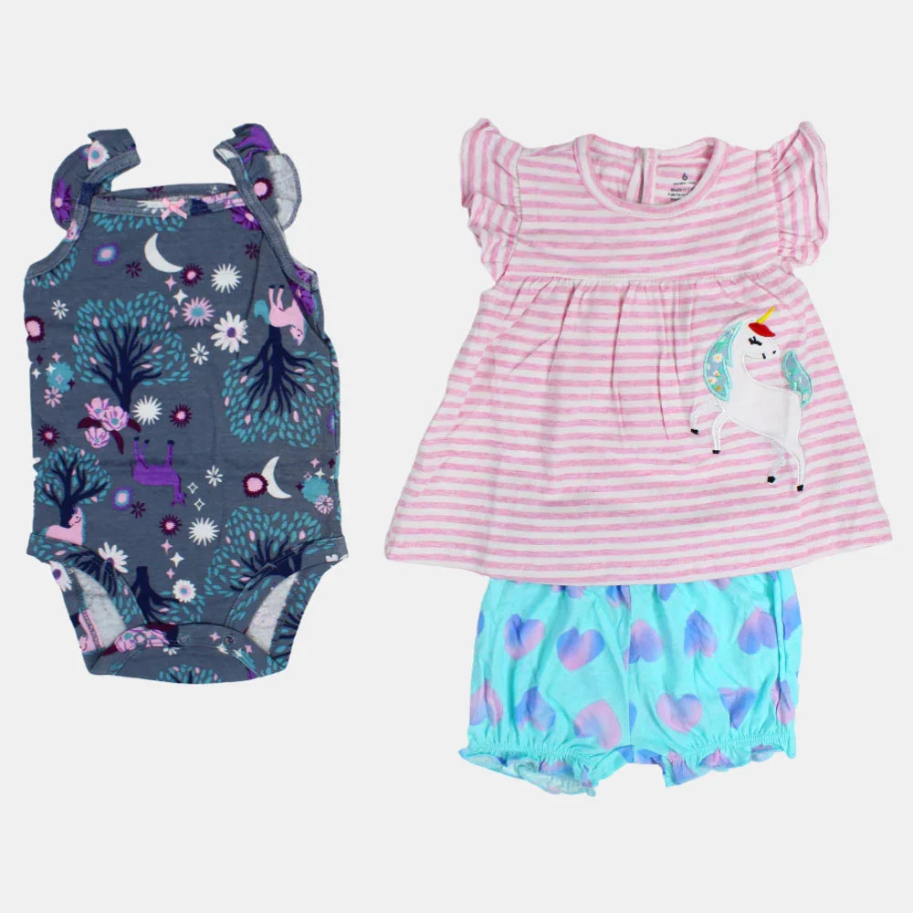 Baby Girls Cotton 3-Piece Outfit Set – Pink with Unicorn Print