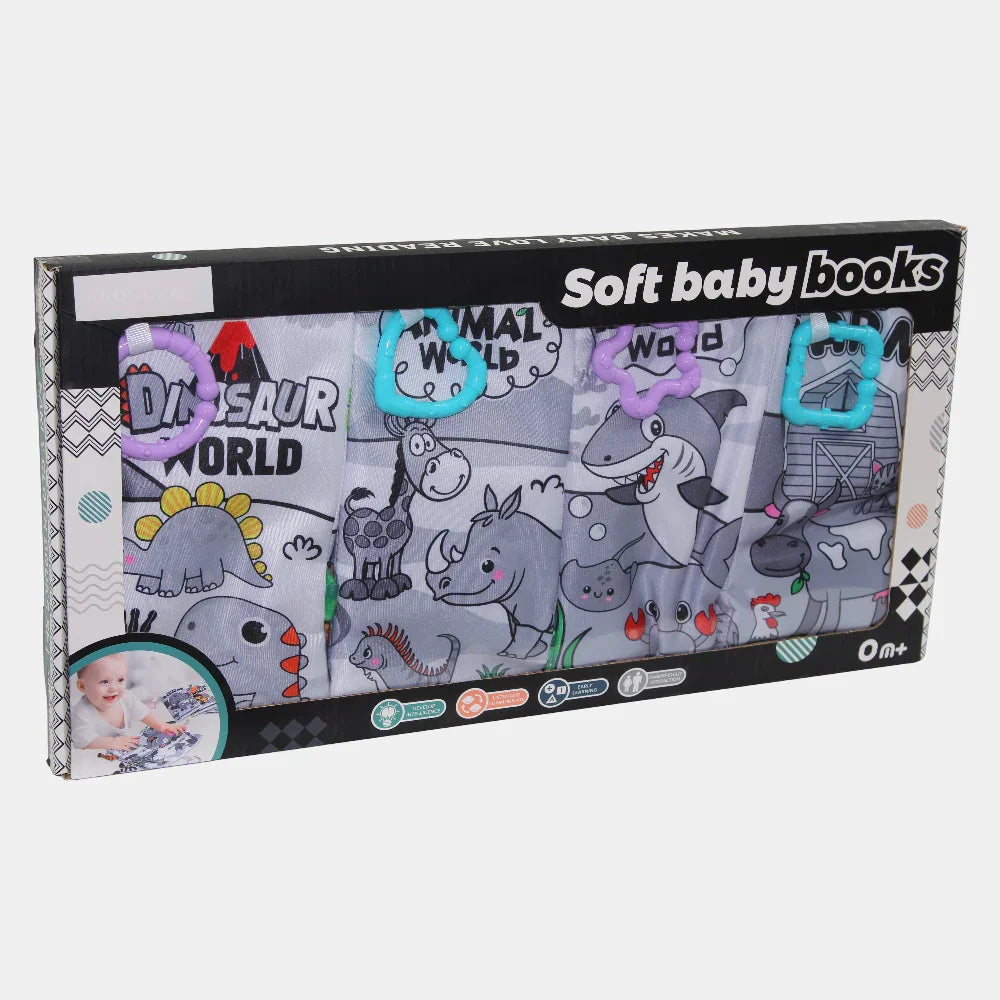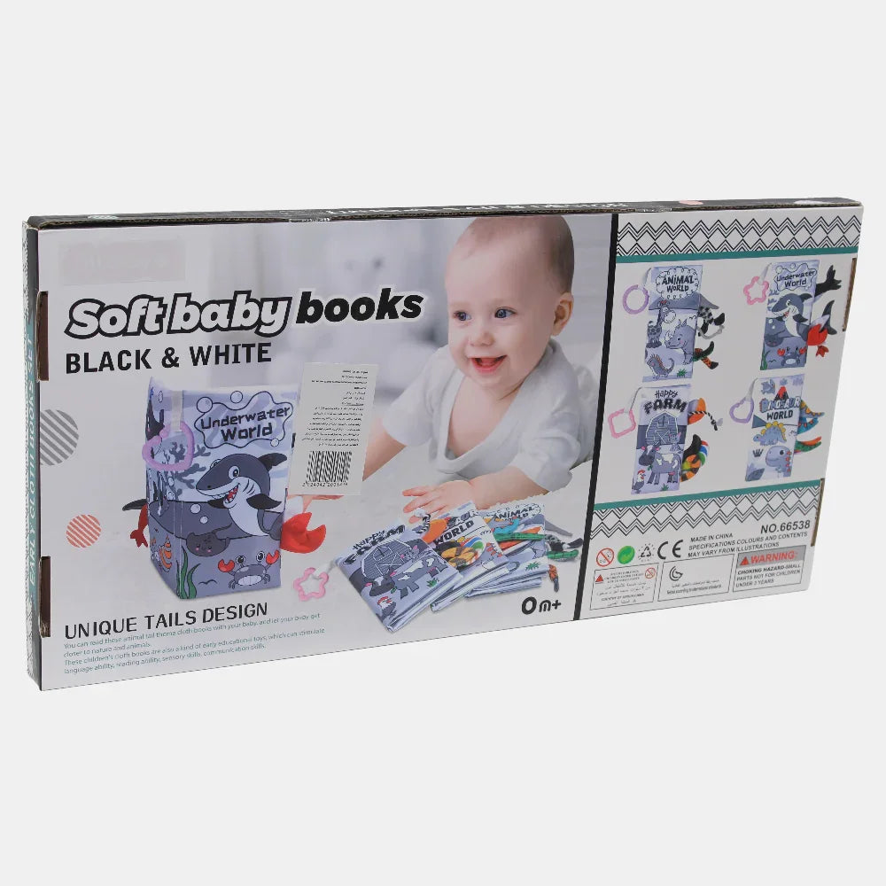 Introduce your baby to a world of discovery with this set of four high-contrast black and white soft books, thoughtfully designed to nurture early development and keep little ones engaged.