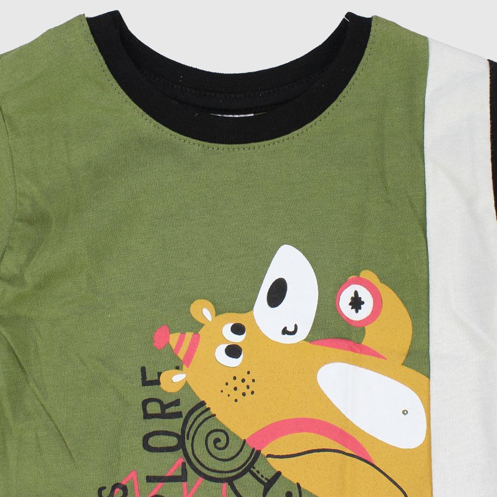 Dress your little one in this comfortable short-sleeved t-shirt. This relaxed-fit t-shirt comes in standard body length with a straight hemline and a round neckline, making it the perfect choice for a hot day out. It's made of 100% cotton. It has a fun print on the front and the back. Style with a pair of jeans or shorts, or many more options.