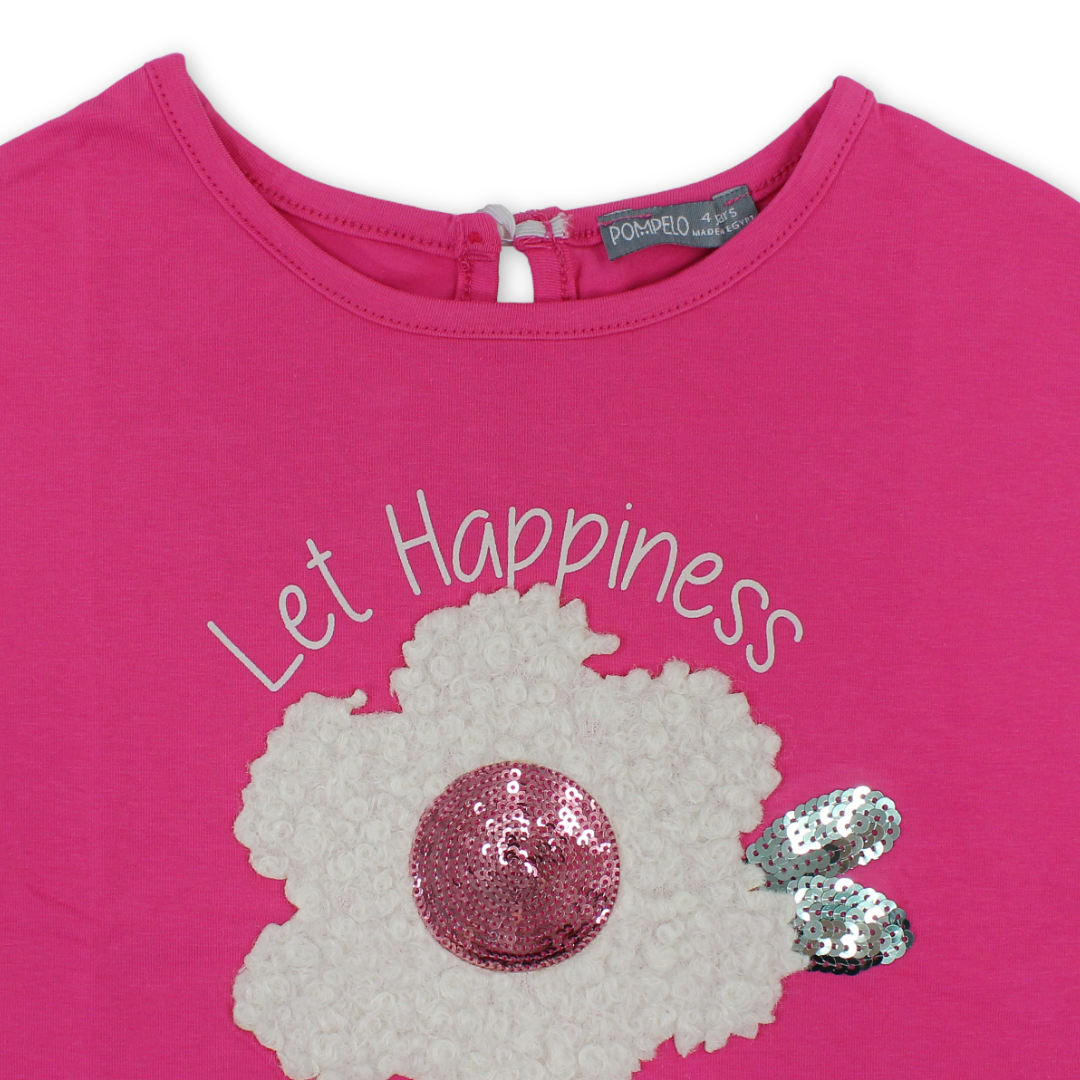 Girls Cotton T-Shirt – Fuchsia with Flower Embroidery