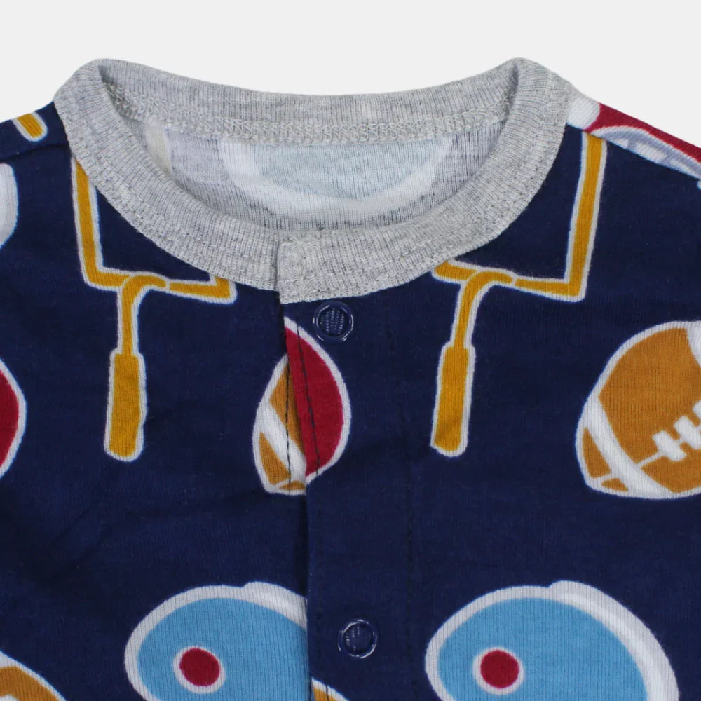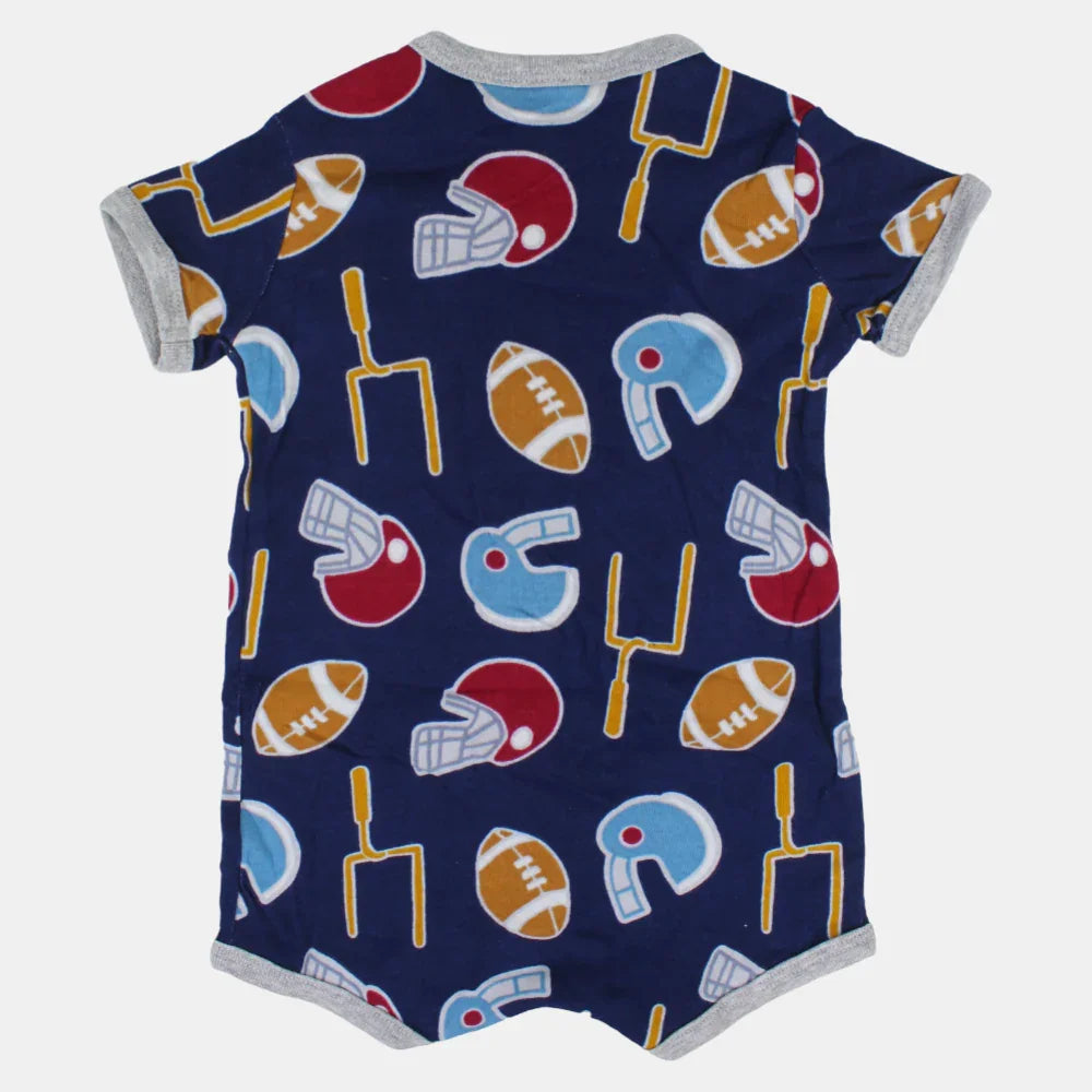Baby Boys Cotton Romper – Navy Blue with Sports Print