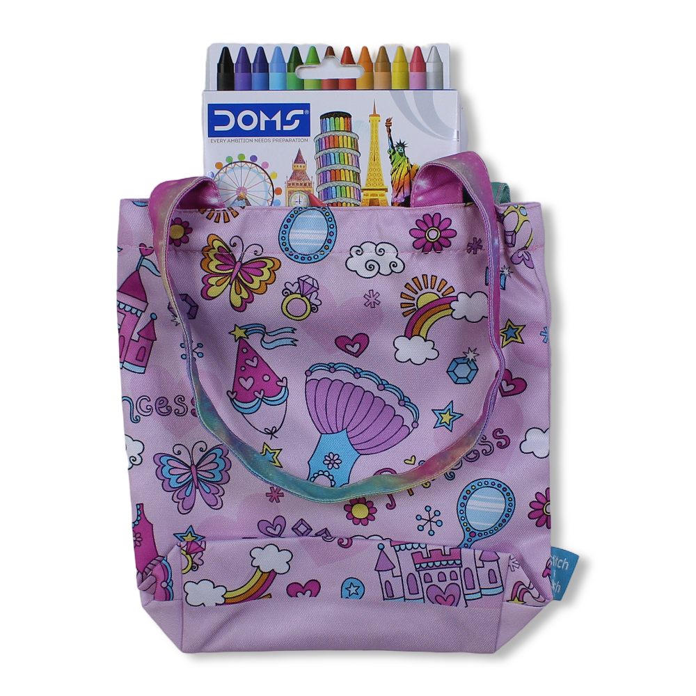 Castle Small Coloring Tote Bag with Extra Long Wax Crayons 12 Colours + 1 Silver