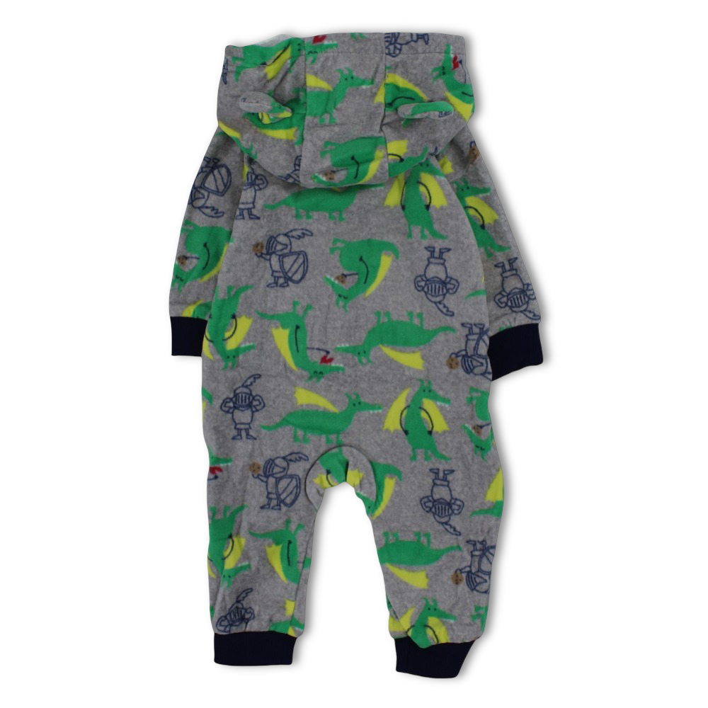 Baby Boys Fleeced Hooded Footless Onesie – Grey with Green Dragons Print