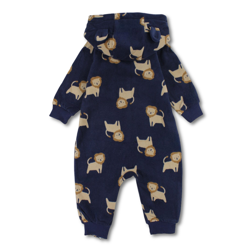Add a touch of wild charm to your little one’s wardrobe with this navy fleeced hooded footless onesie. Crafted from ultra-soft fleece, it keeps your baby warm and snug throughout the day. The playful lions print brings a cute and adventurous vibe, while the hood adds extra coziness for chilly days.