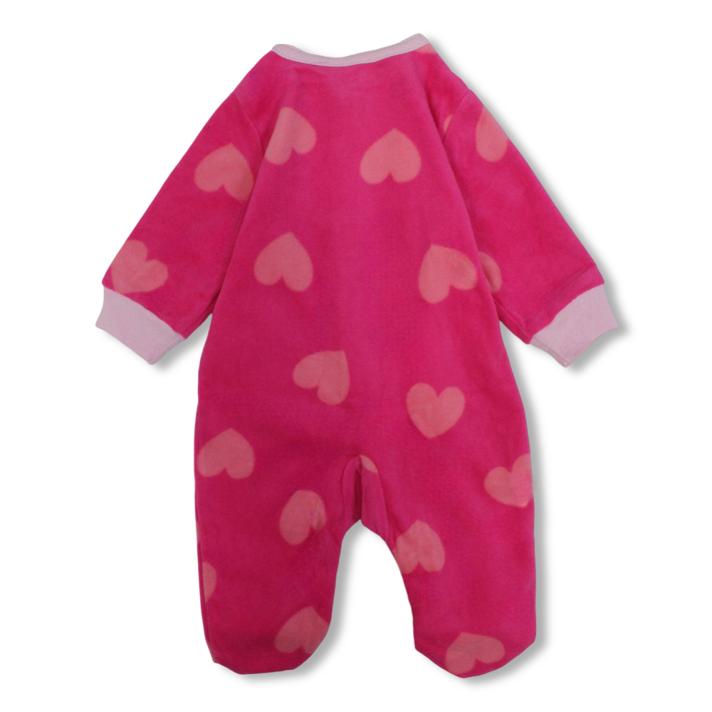 Baby Girls Fleeced Baby Footie – Fuchsia with Mouse Embroidery
