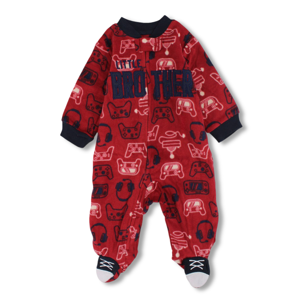 Baby Boys Fleeced Baby Footie – Red with Gaming Design