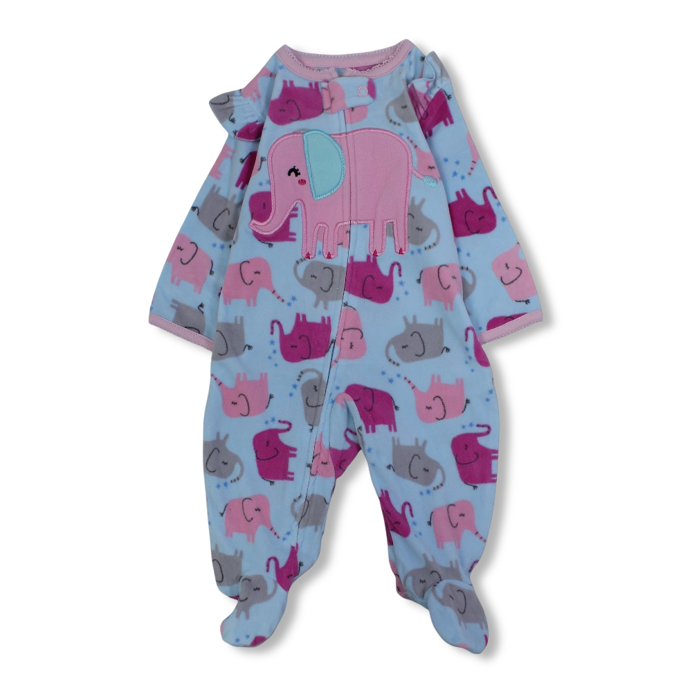 Baby Girls Fleeced Baby Footie – Baby Blue with Elephant Embroidery